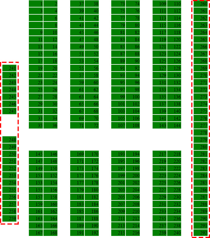 Bitte beachten Sie, dass es sich bei den Plätzen 241 bis 292 um Plätze OHNE Tische handelt.